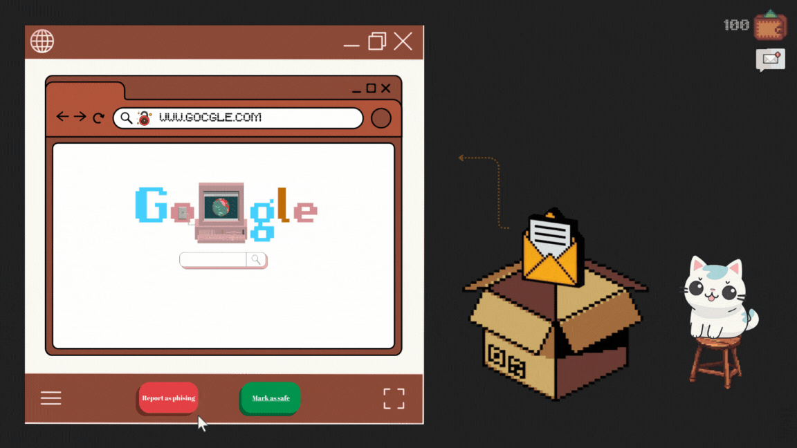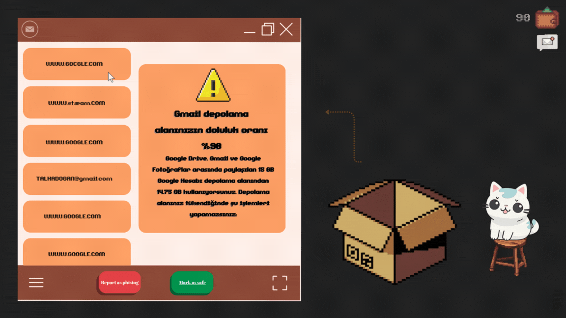 The player's goal is to open boxes arriving at the office door and correctly classify the emails or web content that come out of them.